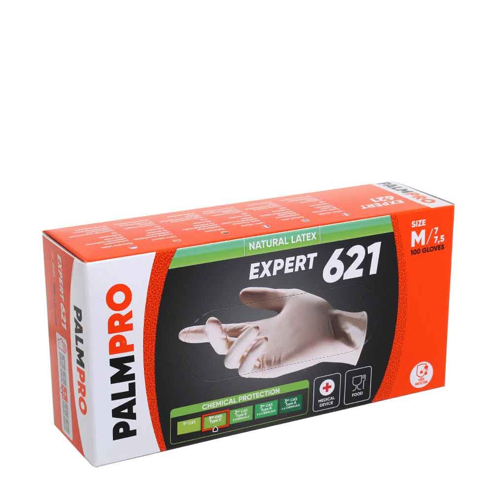 - Guanti medicali monouso non sterili in lattice di gomma naturale Palmpro Expert 621 taglia M 7-7,5 colore bianco con polvere interna vegetale e finitura esterna liscia.