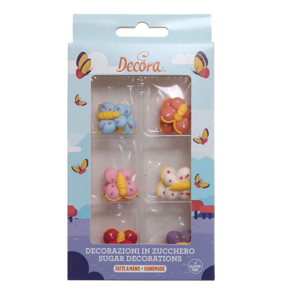 - 12 decorazioni alimentari farfalline colorate in zucchero per torte Decora. Decorazioni di farfalle multicolore in zucchero ideali per decorare dolci e cupcakes. Gluten free.