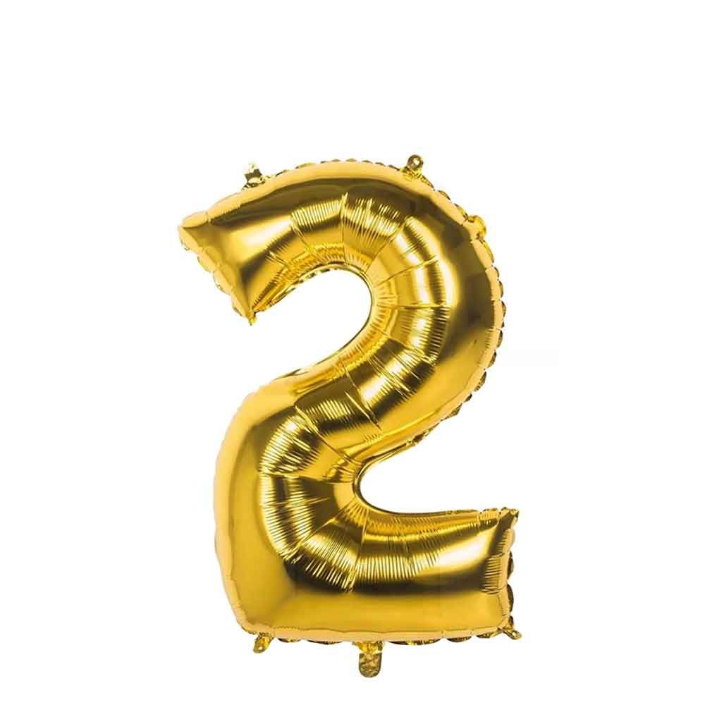 • Palloncino numero 2 in mylar oro metallizzato lucido, dotato di piccole alette di montaggio poste ai lati per appendere il palloncino alle pareti oppure legare con il filo.