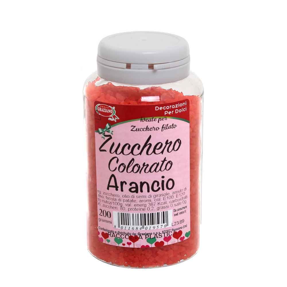 - Zucchero colorato arancione Graziano in confezione da 200 grammi, confezionato in Italia. Ottimo per decorare dolci e torte e per fare lo zucchero filato colorato.
